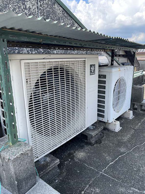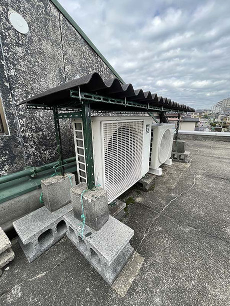 猛暑に備え、屋外機の屋根をクラッシックルーフに変更