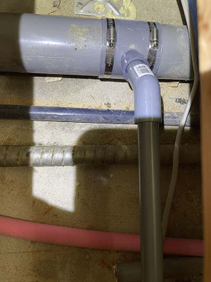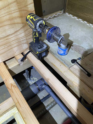床下の排水管Φ75に穴を開け
