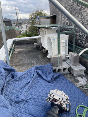 屋外機を吊り上げた!